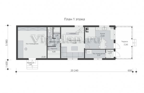 | Размеры дома: | 5.98м×20.24м |